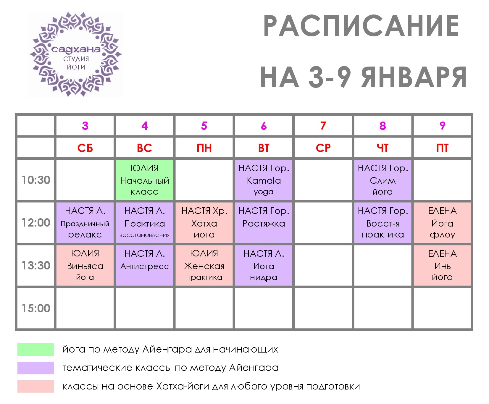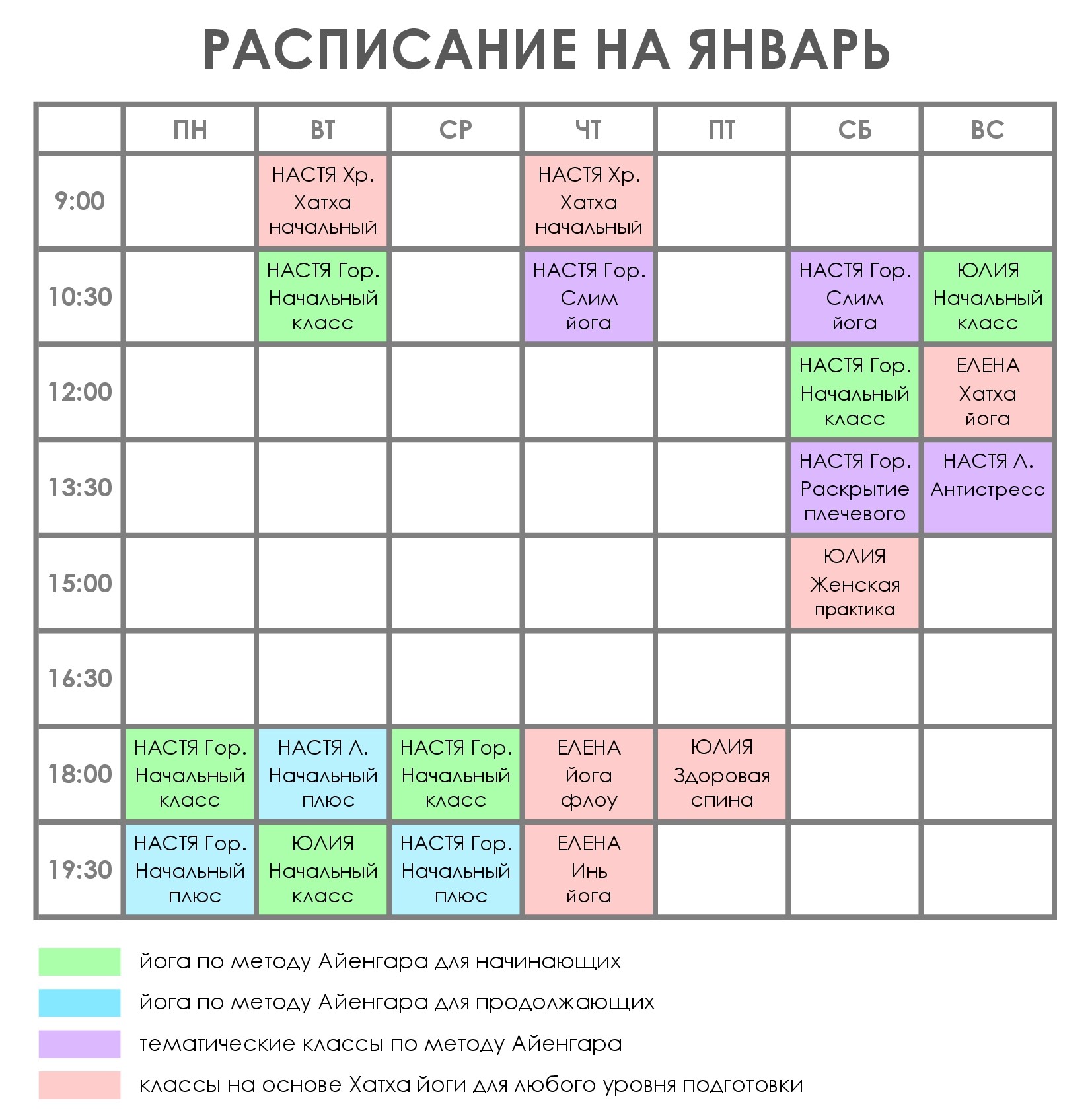 Небольшие изменения в расписании на январь и праздничной неделе!