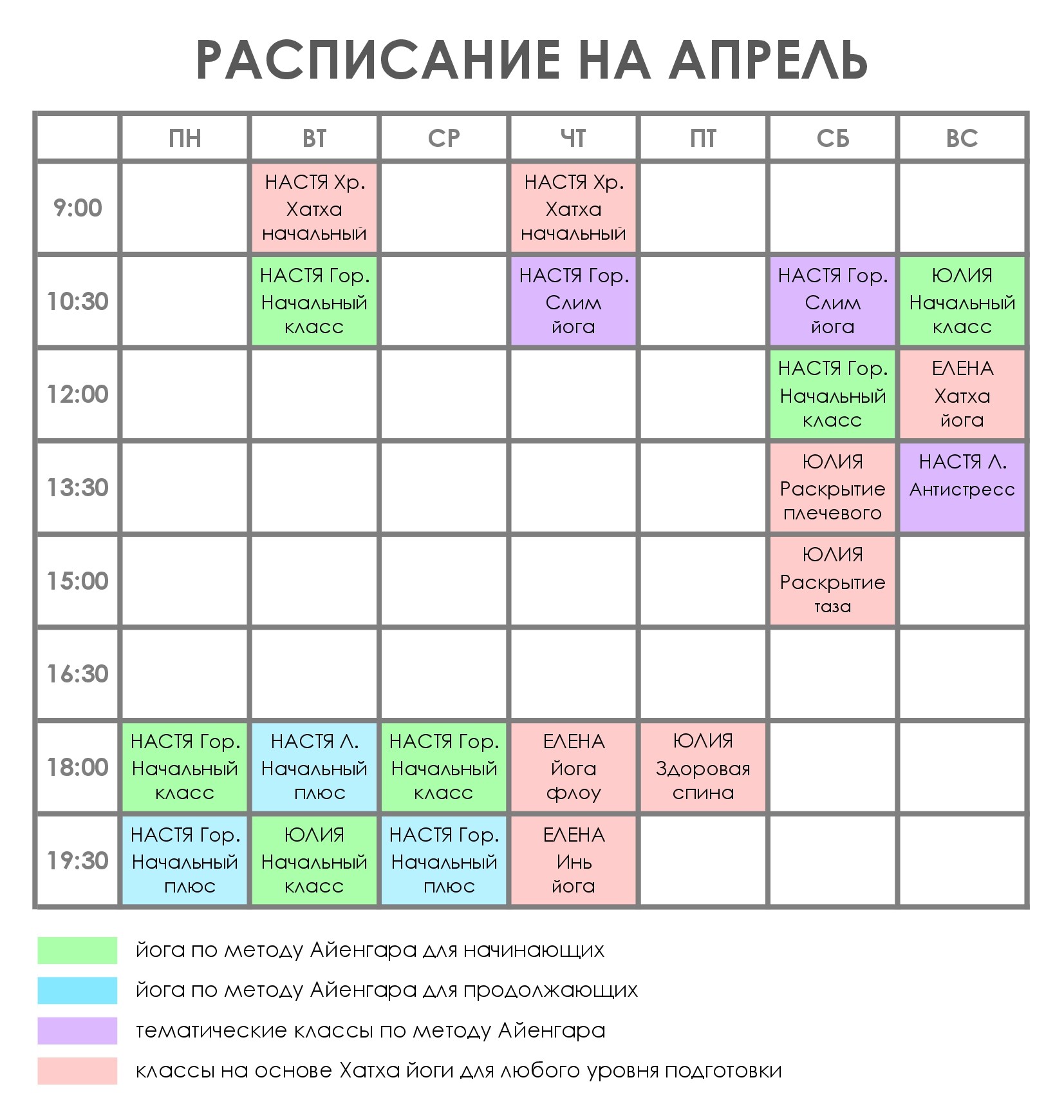 Расписание на апрель