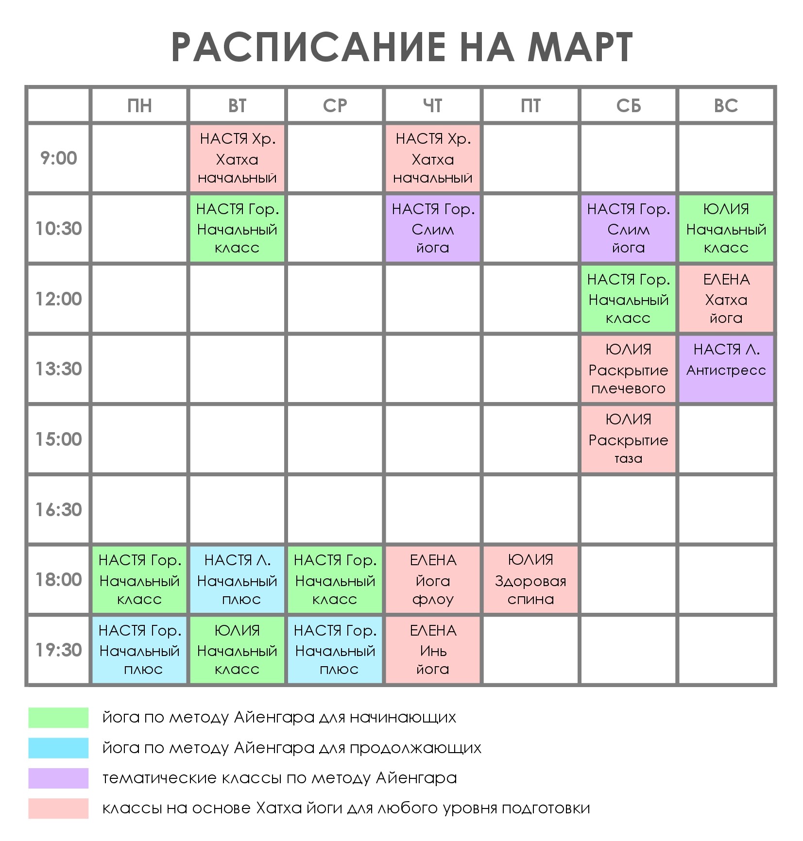 Расписание на МАРТ